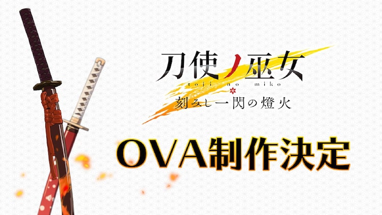 スマホゲーム「刀使ノ巫女 刻みし一閃の燈火」OVAの制作が決定 2019年12月20日2019年12月20日 editor 「刀使ノ巫女 刻みし一閃の燈火」OVA制作決定の告知画像。スマートフォンゲーム「刀使ノ巫女 刻みし一閃の燈火」のOVA制作が決定した。 「刀使ノ巫女」は、異形の存在・荒魂を御刀によって祓う刀使(とじ)と呼ばれる巫女たちの活躍を描いたバトルアクション作品。TVアニメが2018年に放送され、コミカライズもされていた。「刀使ノ巫女 刻みし一閃の燈火」は、アニメ版の主人公・衛藤可奈美の友人である安桜美炎を主人公にした物語を展開している。OVAの詳細は続報に期待しよう。 関連記事「僕ヤバ」市川京太郎の姉・香菜が本日誕生日、描き下ろしビジュアル&映像公開三国志の悪役、董卓の肥満体はどうできた?暴喰コメディ「三国志凶漢伝」1巻発売16世紀のオスマン帝国で働く人々の群像劇「三日月の国 オスマン千夜一夜」1巻発売「名探偵コナン エピソード“ZERO” 工藤新一水族館事件」放送は来年1月3日アニメ「花ざかりの君たちへ」YOASOBIのOP・ED聴けるPV公開、追加キャストに日野聡「シンデレラ」のモデルになった史実に基づく、悪女と王女の対立劇 Tweet