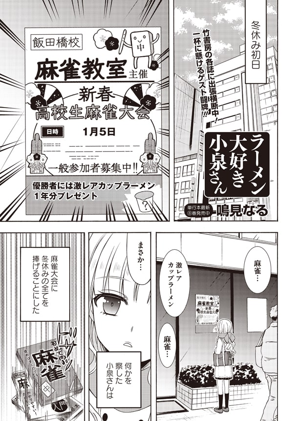 鳴見なる「ラーメン大好き小泉さん」が、発売中の近代麻雀2020年2月号(竹書房)に出張掲載された。