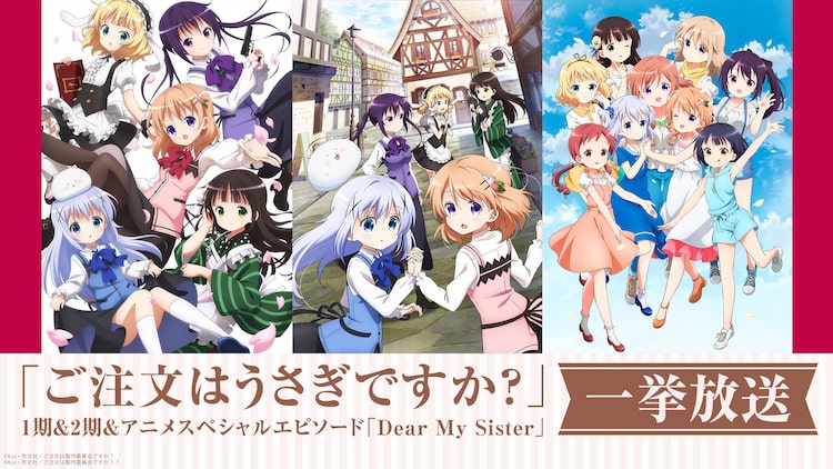 「ご注文はうさぎですか?」1期&2期&アニメスペシャルエピソード「Dear My Sister」一挙放送の告知画像。(c)Koi・芳文社/ご注文は製作委員会ですか? (c)Koi・芳文社/ご注文は製作委員会ですか??