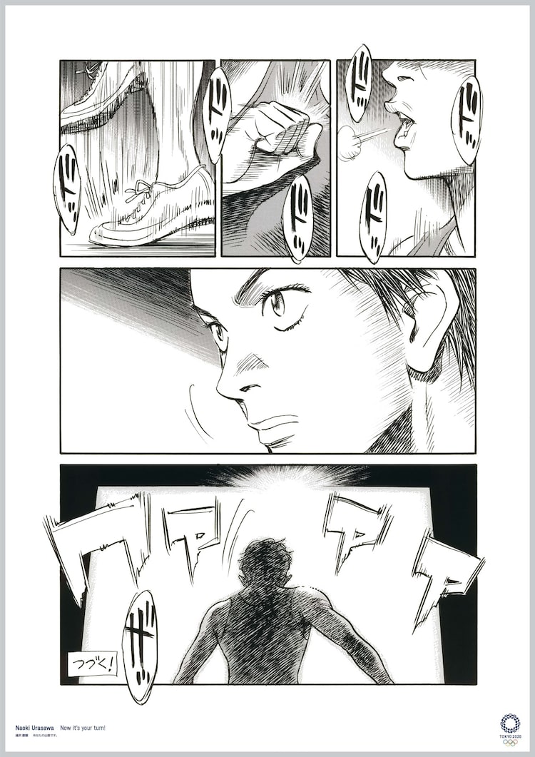 「東京2020 公式アートポスター・プロジェクト」は、国内外のアーティスト19組がオリンピックまたはパラリンピックをテーマにした芸術作品を制作するもの。浦沢はオリンピックをテーマにした「あなたの出番です。」、荒木はパラリンピックをテーマにした「神奈川沖浪裏上空」を発表した。また作品についてのコメントは、東京2020大会の公式サイトで読むことができる。