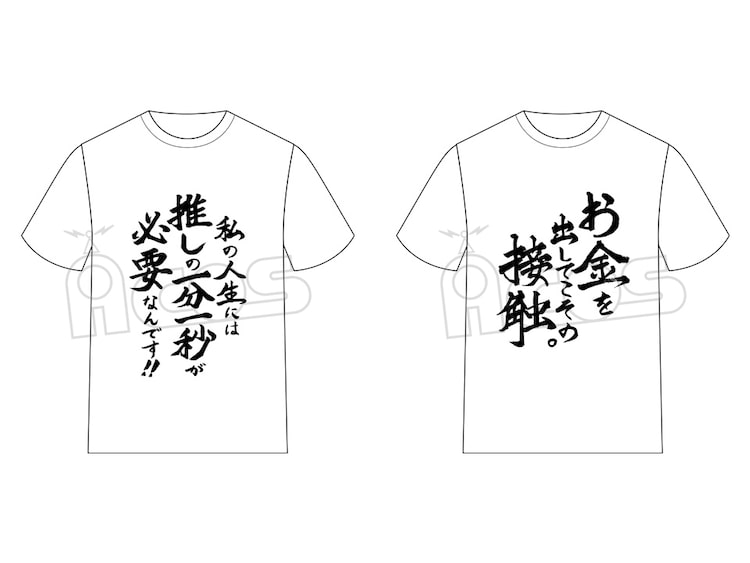 「推し武道」えりぴよ&くまさの名言を筆文字で力強くプリントしたTシャツ 2020年1月13日2020年1月13日 editor 「推しが武道館いってくれたら死ぬ 名言Tシャツ」平尾アウリ原作によるTVアニメ「推しが武道館いってくれたら死ぬ」をモチーフにしたTシャツが、ACOSから登場した。 Tシャツはえりぴよの「お金を出してこその接触。」と、くまさの「私の人生には推しの一分一秒が必要なんです!!」という名言を筆文字でプリントした2種。サイズは男女兼用で、税込各2750円で販売される。ACOSのオンラインショップでは予約を受付中で、2月28日頃に発売される予定だ。 (c)平尾アウリ・徳間書店/推し武道製作委員会 関連記事「無限ガチャ」に小西克幸、金元寿子ら出演 エルフ女王国との戦い収めた新PV「天使のたまご」4Kリマスターは「親としての責任」、押井守が制作当時振り返る「果てしなきスカーレット」新ビジュアル公開 内山昂輝、種﨑敦美らの出演も明らかに芸能人の幼なじみとの溺愛ラブコメディ「私の幼馴染はなにかおかしい」1巻“ケダモノ王子”との甘くて危険な偽りの婚姻譚「獣王子の偽恋花嫁」1巻おじいちゃん、ダンジョンで配信して!孫のために配信して大バズりする探索者の物語 Tweet 関連コミック 推しが武道館いってくれたら死ぬ