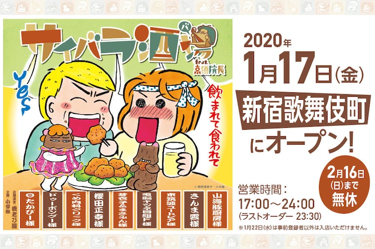 西原理恵子の上京35周年を記念した「サイバラ酒場 feat.高須院長」が、1月17日から2月16日までの期間限定で東京・新宿歌舞伎町にオープンする。