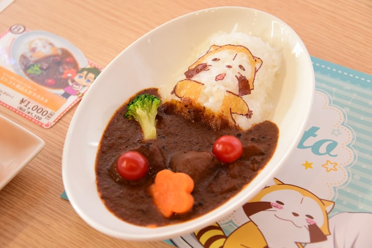 フード、ドリンクのメニューは前期・後期での入れ替わり制。エーデルローズ生の7人と、ラスカルとのコラボレーションをイメージしたメニューが並んだ。原宿店前期および心斎橋店後期には、ラスカルをかたどったパンケーキがぐるりとシンを囲む「シン!無限ラスカルパンケーキ」、美味しそうな料理に誘われて頭から飛び込んでしまったラスカルをイメージした「フォーチュンバラ焼きプレート」、レアチーズケーキに可食プリントを施した「十王円札ケーキ」などがラインナップされた。原宿店後期および心斎橋店前期には、ラスカルの足跡があしらわれたタイガの好物・プリンアラモードやユウの好物・ハンバーガーなどに加え、「プリティーシリーズ」とAMO CAFEとのコラボでは定番となったカレーライス「じっくりコトコト煮込んだラスカル」が登場している。