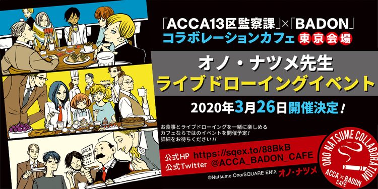 「ACCA×BADONカフェ」の、東京会場の情報が解禁された。3月26日にはオノ・ナツメのライブドローイングイベントも予定されている。