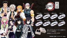 ラインナップされたのは胡蝶しのぶ、煉獄杏寿郎、宇髄天元、時透無一郎、甘露寺蜜璃、伊黒小芭内、不死川実弥、悲鳴嶼行冥モデルの8種。いずれも羽織の柄など各キャラクターにちなんだモチーフが刻まれ、イメージカラーの天然石がセットされている。内側には“悪鬼滅殺”の文字を黒いぶしで刻印。リングには桐箱が付属する。