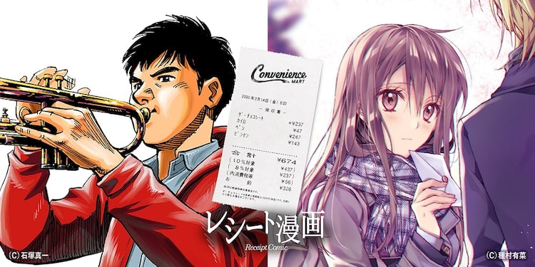 「レシート漫画」のテーマとなったのは、とある1枚のレシート。石塚の描いた「Each day is Valentine’s day」ではトランペット奏者として“本物”を目指していたものの、自分には才能がないと諦め上京して新たな夢を探す決心をした青年・リョウトと、旅立ちの日に彼の前に現れた少女・アキの物語が展開された。一方種村の「恋と魔法とチョコの味」には、思いを寄せる男子・飛鳥に対してどうしても素直になれない少女・仁佳の恋心が描かれている。