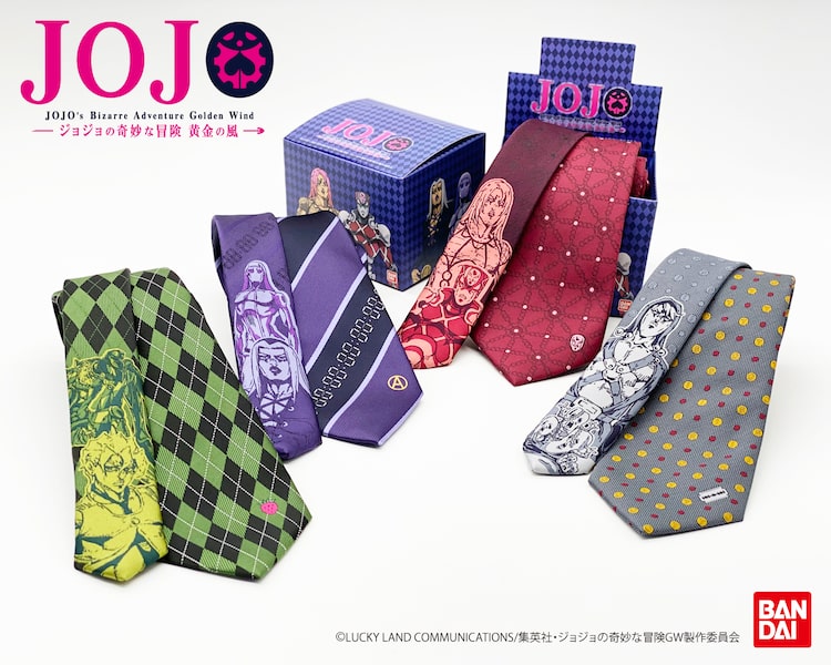 荒木飛呂彦原作によるTVアニメ「ジョジョの奇妙な冒険 黄金の風」をモチーフにしたネクタイの第2弾が、2月14日に一部を除く全国のP.S.FA店舗やオンラインショップにて発売される。価格は税込各2189円。