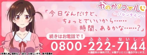 所定の番号に電話することで劇中キャラクターの声を聞くことができる「かのかりコール」。バレンタインデーには瑠夏、墨に加え、雨宮天演じる水原千鶴、悠木碧演じる七海麻美によるバレンタイン仕様のボイスが流れる。なお時間ごとに電話に出るキャラクターは異なるためご注意を。