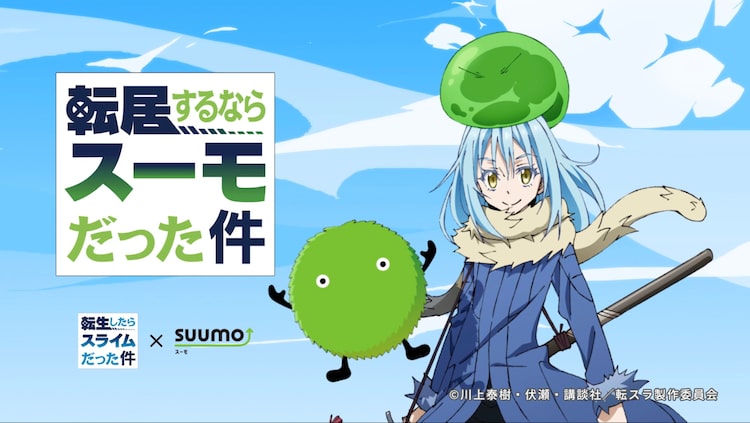 川上泰樹伏瀬原作によるTVアニメ「転生したらスライムだった件」と、住宅情報サイト・SUUMOがコラボレート。「転居するならスーモだった件」と題したキャンペーンが、特別サイトにて公開された。