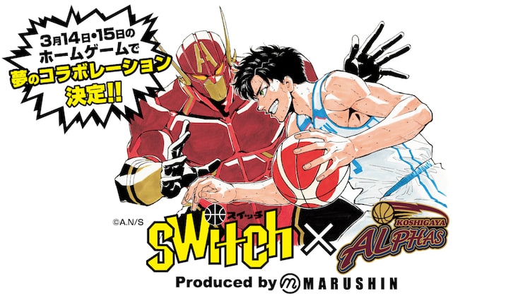 波切敦「switch」と、B.LEAGUE所属のプロバスケットボールチーム・越谷アルファーズのコラボレートが決定。3月14日と15日に埼玉・越谷市立総合体育館のメインアリーナで行われる越谷アルファーズのホーム戦で、さまざまな企画が展開される。