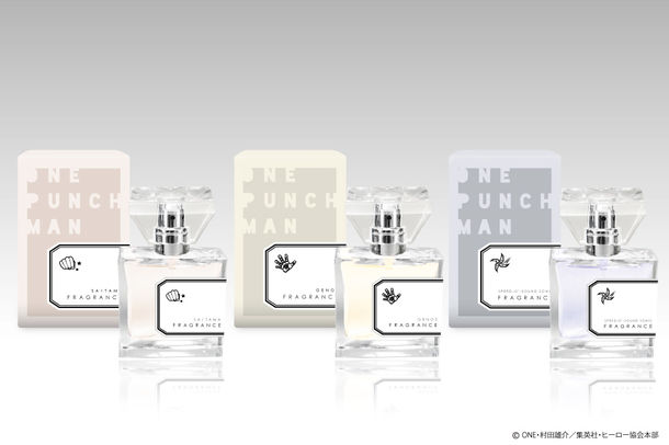 ONE・村田雄介原作によるテレビアニメ「ワンパンマン」に登場するサイタマ、ジェノス、ソニックをイメージしたフレグランスが、9月15日よりprimaniacsの店舗で販売される。価格は5850円。