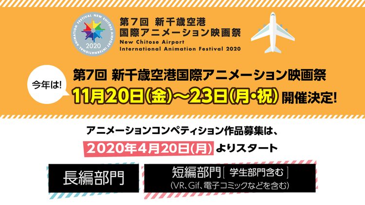 「第7回 新千歳空港国際アニメーション映画祭」の開催が決定。北海道・新千歳空港ターミナルビルにて、11月20日から23日にかけて4日間行われる。
