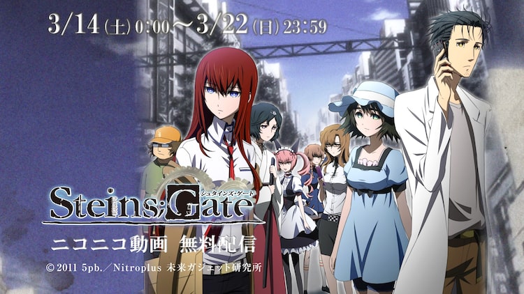 TVアニメ「シュタインズ・ゲート」が全24話が、3月14日から3月22日までニコニコ動画で無料配信される。
