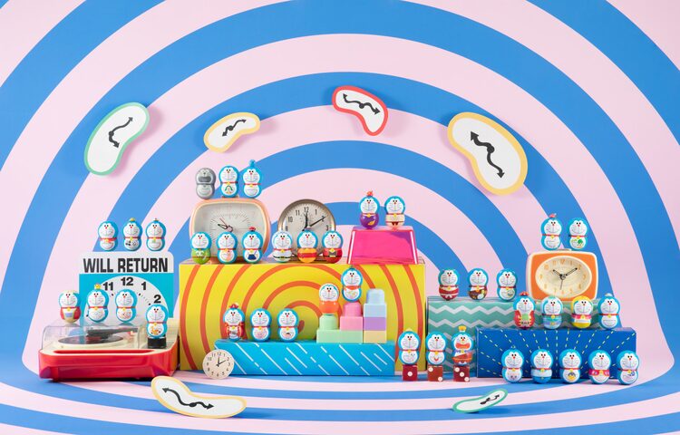 映画40作品のドラえもんがずらり、飾って揺らして楽しめる食玩フィギュア
