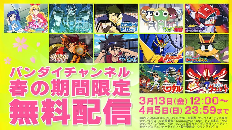 「アイカツ!」「ワタル」「カウボーイビバップ」などバンダイチャンネルで無料配信