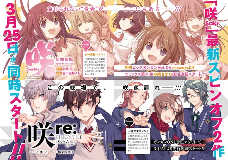 なお3月25日発売のビッグガンガンVol.04(スクウェア・エニックス)では、小林立原作、五十嵐あぐり作画による「咲-Saki-阿知賀編 episode of side-A」の新章も開幕。ファンはこちらもお見逃しなく。