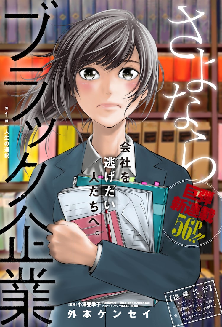 「さよならブラック企業」の主人公は大手不動産会社の電話営業代理店で働く、25歳の契約社員・水城リコ。理不尽で過酷な仕事環境の中、「ちゃんと最後までやり通すんだ」「このまま耐えれば必ず…」とがんばり続けるリコだったが、休日出勤のため会社に向かっていた電車の中で、ふと涙をこぼしてしまう。そこに声をかけてきたのは、退職代行などを専門とする弁護士・不知火で……。本作には監修として、「退職代行 『辞める』を許さない職場の真実」を著書にに持つ小澤亜季子が携わっている。