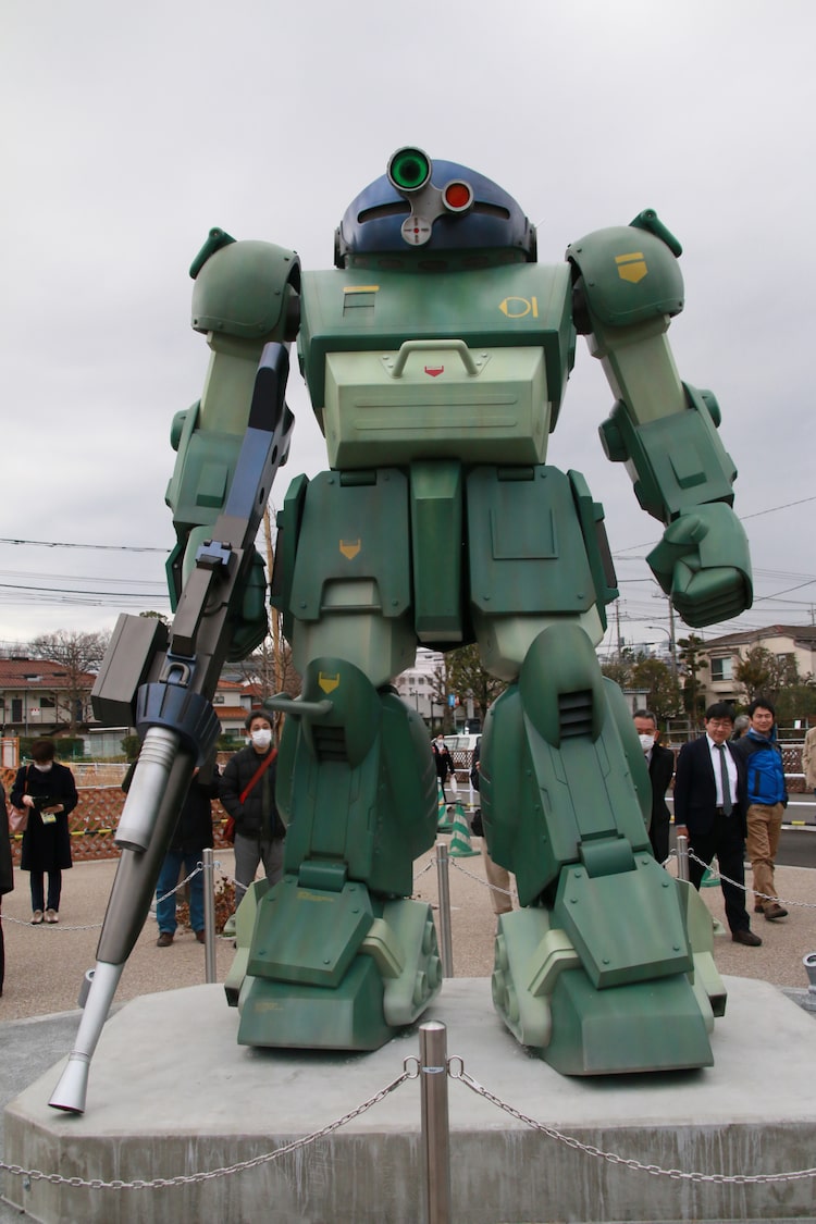 「装甲騎兵ボトムズ」原寸大のスコープドッグ像が大河原邦男の地元・稲城市に登場