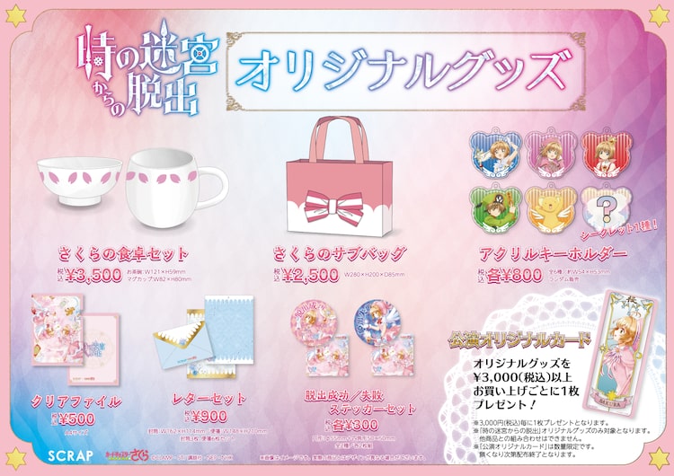 CLAMP原作によるTVアニメ「カードキャプターさくら クリアカード編」の参加型謎解きイベント「リアル脱出ゲーム×カードキャプターさくら『時の迷宮からの脱出』」にて販売される、オリジナルグッズとオリジナルフードが公開された。