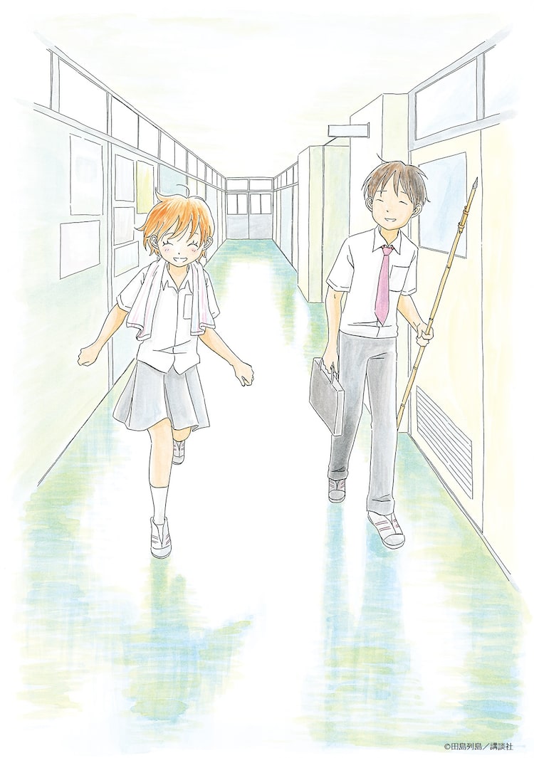 6月26日に公開される「子供はわかってあげない」は、水泳部に所属する高校2年生の女子・朔田美波の、ひと夏の冒険を描いた物語。イラストは、美波と書道部の門司昭平が、楽しそうに談笑しながら廊下を歩くシーンが描写され、優しく柔らかなタッチで仕上げられた。明日4月3日より、コラボイラストが入った「田島列島 描きおろしクリアファイル」付きのムビチケが発売開始。