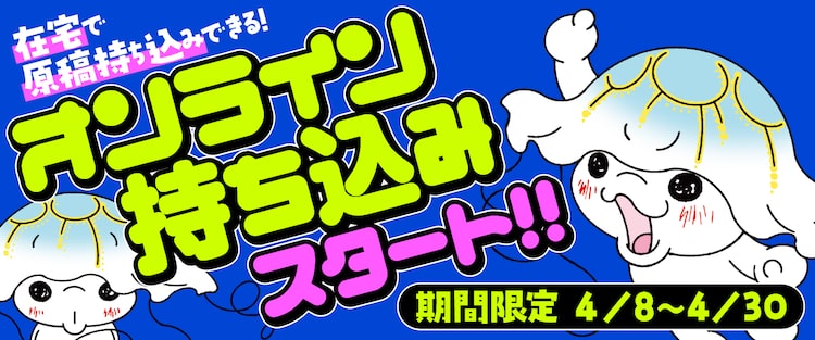 くらげバンチ編集部、4月限定で“オンライン持ち込み”を受付中 2020年4月9日2020年4月9日 editor オンライン持ち込みの告知ビジュアル。新潮社のWebマンガサイト・くらげバンチの編集部が、“オンライン持ち込み”の受付をスタートした。 これは新型コロナウイルス感染拡大の影響を受けたもの。期間は4月30日までとしており、メールに必要事項を記入の上、完成原稿を添付して指定のアドレスに送付しよう。応募者は1週間以内に、編集部員から電話もしくはスカイプでアドバイスをもらうことができる。なお当面の間、“オンライン持ち込み”以外の受付は停止するとのこと。詳細は、くらげバンチの編集部ブログで確認を。 関連記事「俺レベ」「夫を味方にする方法」など4作品のグッズ当たるピッコマオンラインくじ劇場版「呪術廻戦」入場者特典に芥見下々描き下ろし「じゅじゅさんぽ」イラストカード「サムライトルーパー」分割2クールで放送 増田俊樹、Lynn、小西克幸ら出演三鷹の森ジブリ美術館ライブラリー「20周年記念映画祭」で「しわ」など厳選作を上映はくりの魔法使いファンタジー、流行りの“ぬい活”マンガ、4コママンガ議論かたおか徹治「ウルトラ兄弟物語」の愛蔵版が発売、単行本未収録作を全4巻で紹介 Tweet