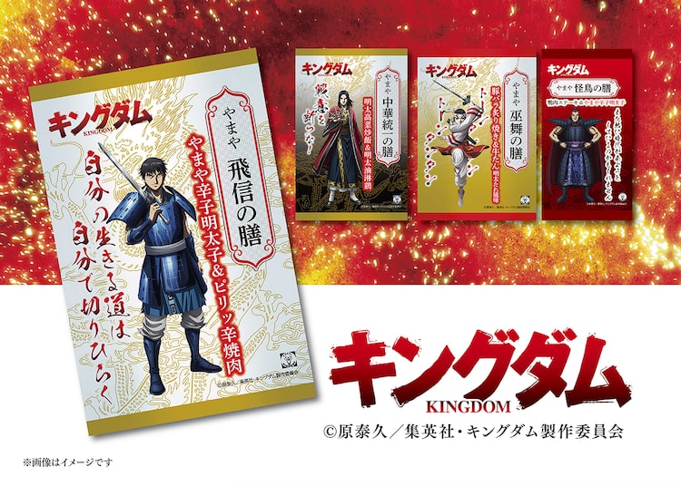 原泰久原作によるTVアニメ「キングダム」と、辛子明太子の製造販売メーカーであるやまやコミュニケーションズがコラボレート。「やまや キングダム弁当シリーズ」が4月下旬より期間限定で発売される。