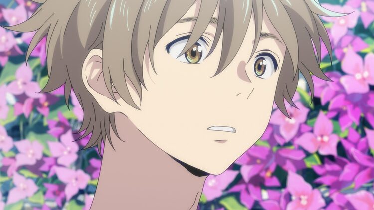 9月11日より全国公開される劇場アニメ「海辺のエトランゼ」。特報映像は、村田太志演じる橋本駿、松岡禎丞演じる知花実央が、夜の海辺のベンチに佇む出会いのシーンから始まる。実央の儚げな横顔、色とりどりの花々、愛想良く足元に寄り添う猫といった美しい場面が切り取られた。
