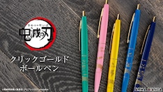 ボールペンは竈門炭治郎、竈門禰豆子、我妻善逸、嘴平伊之助、冨岡義勇、煉獄杏寿郎、宇髄天元、時透無一郎、胡蝶しのぶ、甘露寺蜜璃、伊黒小芭内、不死川実弥、悲鳴嶼行冥モデルの全13種。キャラクターをイメージしたカラーリングで、軸部分にはそれぞれを象徴するモチーフがプリントされている。また高級感のあるゴールドのクリップとリングも特長だ。