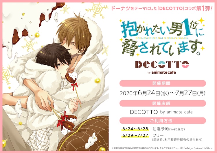 アニメイトカフェの新ブランド・DECOTTO by animate cafeが、6月24日に東京・池袋にてオープン。イベント第1弾に、桜日梯子「抱かれたい男1位に脅されています。」とのコラボカフェが開催される。