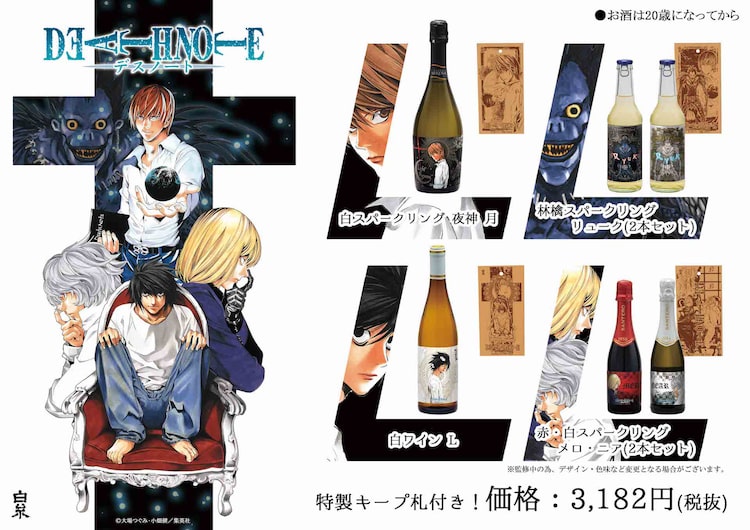 大場つぐみ原作による小畑健「DEATH NOTE」をモチーフにしたワインが、白糸酒造より発売された。