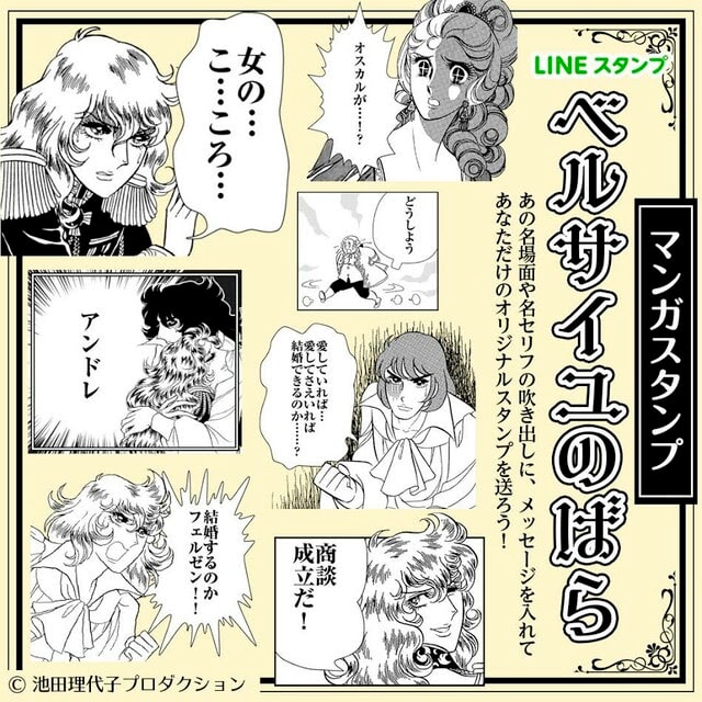 「ベルサイユのばら」オスカルのフキダシに好きなメッセージを入力できるLINEスタンプ