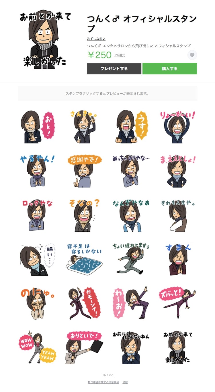 みずしな孝之描き下ろしによる、つんく♂のLINEスタンプがリリースされた。購入には税込250円または100コインが必要となる。