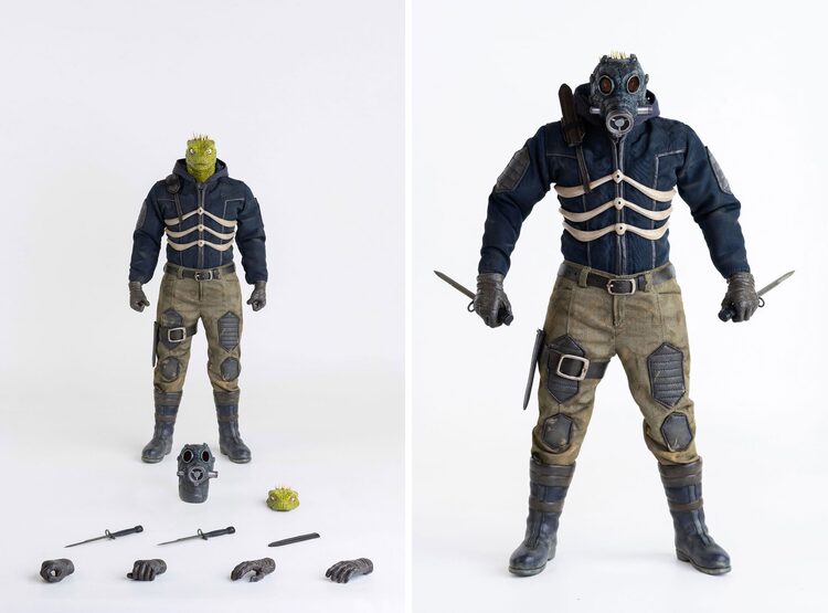 カイマンを1/6スケールで立体化した全高約36cmのフィギュアには、ガスマスクバージョンとトカゲバージョンのヘッドパーツ2種が付属する。ガスマスクは林田によるアレンジ版のデザイン。トカゲバージョンには通常の目と、怒っている目の交換用表情パーツ2種が用意された。そのほか手首パーツ3対や、ナイフ、鞘、ボディアーマーといった装備も同梱。フード付きウィンドブレーカーなどの衣装は布製だ。