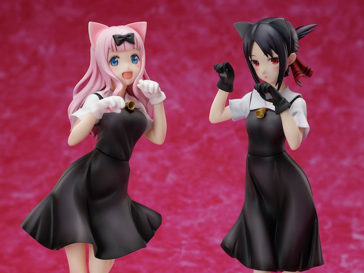 劇中に登場した猫耳を着けて少し照れた表情を浮かべるかぐやと、笑顔で猫のコスプレを楽しむ藤原書記がそれぞれ1/7スケールで立体化された2つのフィギュア。どちらも鈴付きの首輪を装着し、猫らしいポーズで造形されている。価格は税込各1万5500円。予約した人には12月に届けられる。
