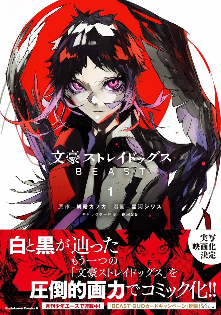 芥川が探偵社に、敦がマフィアにいるif物語「文豪ストレイドッグス BEAST」1巻 2020年7月4日2020年7月4日 editor 「文豪ストレイドッグス BEAST」1巻帯付き朝霧カフカ原作による星河シワス「文豪ストレイドッグス BEAST」1巻が、本日7月4日に発売された。 「文豪ストレイドッグス BEAST」は、朝霧による同名小説のコミカライズ版。芥川龍之介が武装探偵社に入社していたら、逆に中島敦がポートマフィアになっていたらというif設定で展開される「文豪ストレイドッグス」の外伝作品だ。なお同作は芥川役を橋本祥平、敦役を鳥越裕貴が演じる映画化も決定している。 関連記事「この本を盗む者は」田牧そらが片岡凜に壁ドン?東山奈央は「寝言と寝息」をアピールめっちゃかわいくないこれ?「ミルキー☆サブウェイ」LINEスタンプ第2弾望月三起也「ワイルド7」熱砂の帝王を生原稿仕様で、仮予約数150部以上で刊行決定三津田信三の小説「首無の如き祟るもの」コミカライズ、MAGKANで開幕陰陽師になり、前世の縁で結ばれた妖怪たちとともに戦う「あやかし恋廻り」マンガ版鬼よ、今こそ、その力を示せ!「地獄先生ぬ~べ~」装着できる“鬼の手”ぬいぐるみ Tweet 関連コミック 文豪ストレイドッグス BEAST 文豪ストレイドッグス STORM BRINGER 文豪ストレイドッグス 文豪ストレイドッグス わん! 文豪ストレイドッグス外伝 綾辻行人 VS. 京極夏彦 文豪ストレイドッグス 太宰、中也、十五歳 文豪ストレイドッグス 探偵社設立秘話