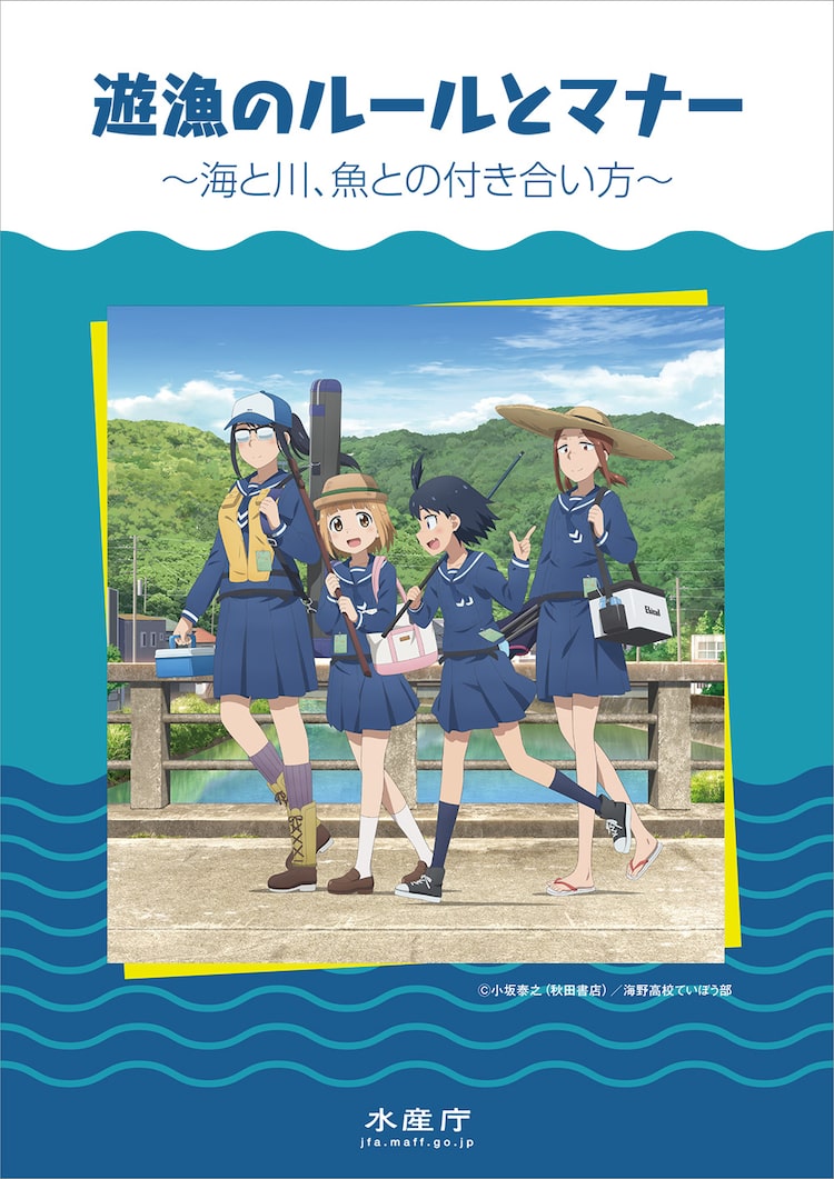 小坂泰之原作によるTVアニメ「放課後ていぼう日誌」と水産庁がタイアップした釣りのマナーパンフレットが完成した。