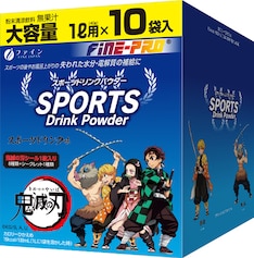 「スポーツドリンクパウダー(鬼滅の刃)」は5袋入と10袋入の2種類。パッケージやパウダーの袋には炭治郎たちのイラストがデザインされた。商品にはシークレット1種を含むシール全9種から1枚が付属。シークレットの絵柄は5袋入と10袋入でそれぞれ異なるものが用意された。スポーツドリンクパウダーは数量限定品として、一部の小売店やファインのオンラインショップにて販売される。