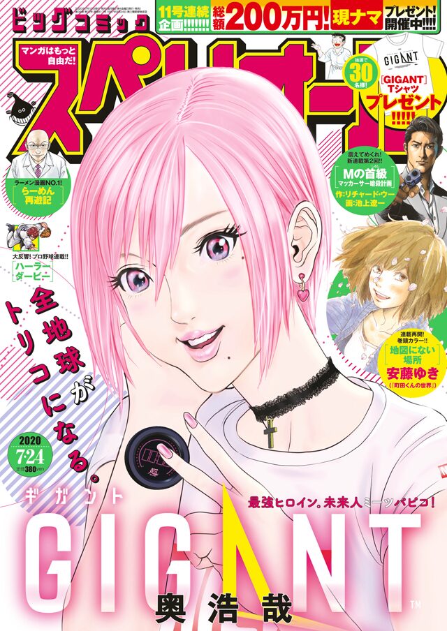 これは「GIGANT」の単行本が累計100万部を突破したこと、8月19日に最新6巻が発売されることを記念し実施されるもの。「GIGANT」のロゴがあしらわれたTシャツが抽選で30人にプレゼントされる。応募方法などの詳細は誌面で確認を。