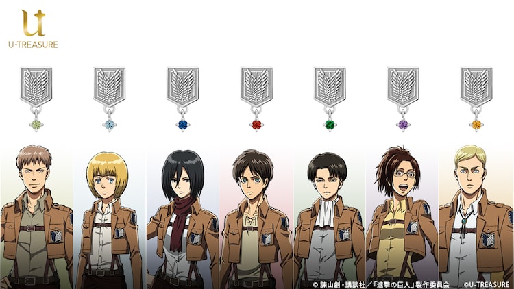 なおU-TREASUREではキャラクターのセリフがデザインされた「メッセージリング」のラインナップにミカサとジャンモデルを追加。ピアス・イヤリングと同じく7月14日13時から予約受付を行う。