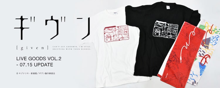 キヅナツキ原作によるTVアニメ「ギヴン」より “実在するバンドのライブグッズ”をコンセプトとしたグッズ第2弾が、販売サイト・キャラ印.comにて7月15日に発売される。