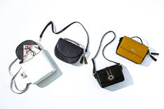 三日月宗近モデルは、ネイビーを基調に半月型のフォルム。フラップを閉じると三日月が浮かび上がる。加州清光モデルは服装のカラーリングを落とし込んだ、ブラックカラーのバッグ。内装の柄は、加州清光のコートの裏地とお揃いのダイヤモチーフがあしらわれた。