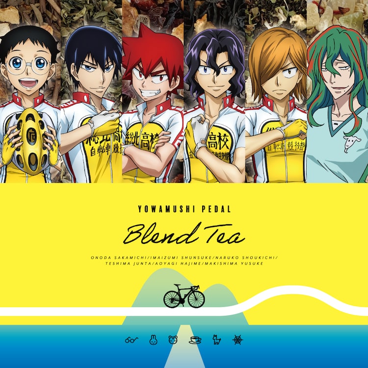 ブレンドティーは、小野田坂道、今泉俊輔、鳴子章吉、手嶋純太、青八木一、巻島裕介の6人をイメージした6種類がラインナップされた。坂道をイメージしたブレンドティーは、深みのあるほうじ茶に、柚子の皮とオレンジピールがトッピングされ、ほんのりと甘酸っぱさが広がる風味に。手嶋は、キームン紅茶のまろやかな味に、オレンジピールの酸味とチョコレートフレーバーが重なる、落ち着いた彼をイメージしたブレンドとなっている。また赤をイメージカラーに持つ鳴子の茶葉には、真紅のハイビスカス、レッドカラントフレーバーなどがブレンドされ、味だけでなく見た目にもこだわられた。