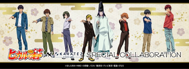 コラボキャンペーンには、進藤ヒカル・藤原佐為・塔矢アキラ・筒井公宏・加賀鉄男・三谷祐輝・伊角慎一郎・和谷義高のドリンク8種を用意。ドリンク1杯の注文につき、描き下ろしイラストを使用したコースター全16種の中からランダムで1枚プレゼントされる。描き下ろしイラストには、碁石を指にはさんで掲げるヒカルらの姿が描かれた。また同イラストを用いたコラボグッズを展開。トレーディング碁石風ミニ缶バッジ16種、トレーディング絵馬8種、両面アクリルキーホルダー8種、ミニ色紙コレクションセット2種がラインナップされ、店頭販売されるほか、アニメイトのオンラインショップで予約を受付中だ。なおドリンクとコラボグッズは、カラオケルームを利用せずに購入することもできる。ミニ色紙コレクションは、デザインが異なるA、Bの各8枚組セットをオンラインショップ限定で発売。予約商品は、10月上旬の発送を予定している。