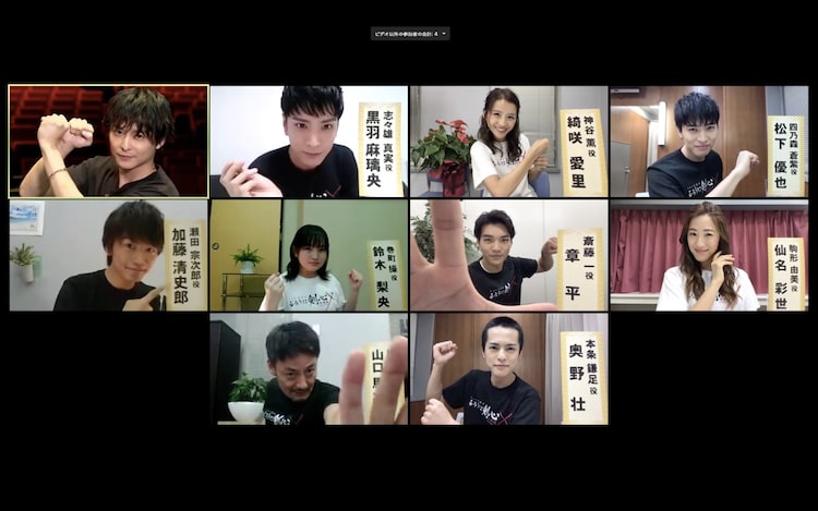 山口のフリップには「若返り」というキーワードが。原作マンガの比古の若々しい外見に触れて「役の年齢は(自分の年齢と)近いですが、なんとか若返らないとこの役はできないなと思っています」と胸中を明かす。奥野は「美しさ、強さ」と書き「『るろうに剣心』ならではの大胆な殺陣の中で、鎌足ならではの美しさやしなやかさを表現したい。ただその中にも力強さがありますし、プラス志々雄真実への愛の強さを表現できれば」と話した。最後には小池が「斬新な発表で楽しかったです。早く皆さんと直接会いたい」と感想を語り、「キャスト一同劇場でお待ちしています!」と視聴者に向けて呼びかけた。なお発表会は同舞台の公式YouTubeチャンネルでアーカイブ配信中だ。