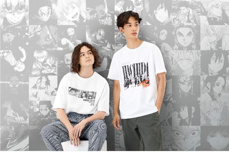 一方GUはTVアニメの名場面や名セリフなどを用いたデザインを展開。物語で描かれる家族愛や師弟愛、各キャラクターの着物やヘアスタイルなどをモチーフに世界観を表現する。グッズとしてラインナップされたのはメンズ向けウエア6種、メンズ向けインナーウエア4種、女性向けウエア9柄、キッズ向けウエア7種、ポーチ3種、モバイルケース1種の全30種。GUの特設コラボサイトでは一部商品が先行公開されている。