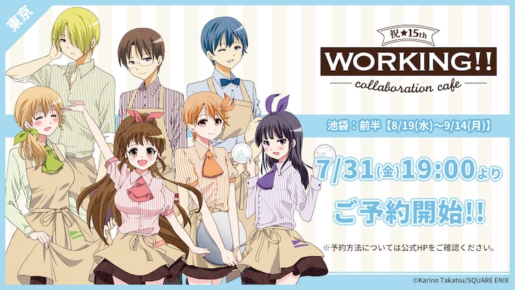 池袋会場の前半期間の予約は、7月31日19時よりスタート。なお「WORKING!!カフェ」は9月17日より大阪・アニぱらCAFE心斎橋で、11月6日より愛知・アニぱらCAFE名古屋でも開催予定だ。