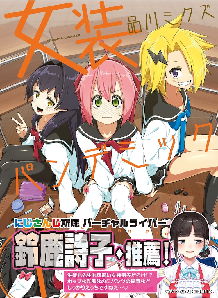 「女装パンデミック」はコミックヴァルキリーで連載中。事故で昏睡状態になっていた少年・古賀ナナキが2年ぶりに目覚めたところ、世の中で女装が大流行していたことから物語が動き出す。ナナキが通っていた男子校も、いつの間にか女装男子だらけになっていた。そのうえナナキも、周囲から女装の才能を見出されて……。