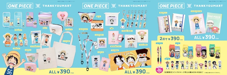 尾田栄一郎原作によるアニメ「ONE PIECE」とサンキューマートのコラボアイテムが、 8月8日より全国のサンキューマート店舗で、11日よりWebショップで販売される。