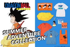 「SUMMER ADVENTURE COLLECTION」と題した今回のグッズには、少年期の悟空など1986年から放送されたアニメ「ドラゴンボール」のイラストを使用。“ジャン拳”を繰り出す悟空や、筋斗雲に乗る悟空の後ろ姿がTシャツをはじめ、エコバック、巾着、タオルにあしらわれた。また白地に青い空と海に囲まれて建つカメハウスをプリントしたシャツやTシャツは、爽やかさを感じる1枚に仕上がっている。アパレルアイテム以外にもラバーキーホルダーや、筋斗雲を模したフロアマットなどがラインナップされた。なおキッズサイズのTシャツも用意されているので、家族でお揃いのコーデを楽しんでみては。