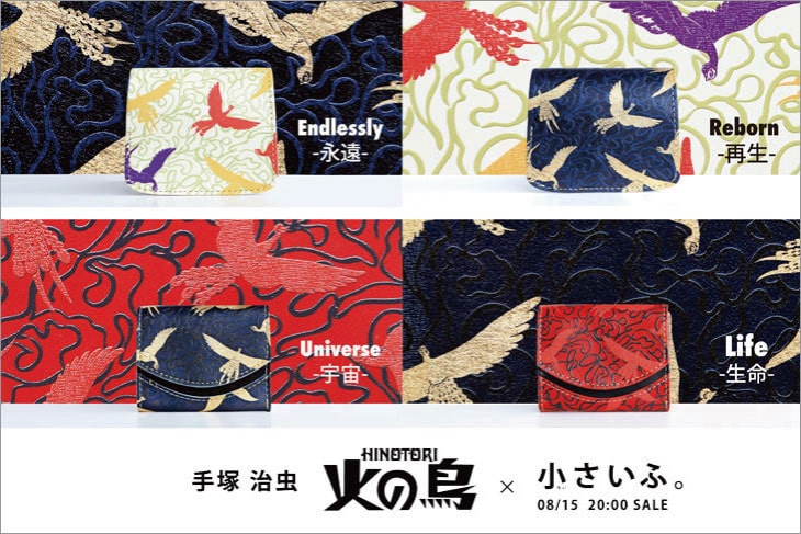 手塚治虫「火の鳥」とレザーファクトリーブランド・クアトロガッツの財布「小さいふ。」のコラボモデルが、8月15日20時より販売される。